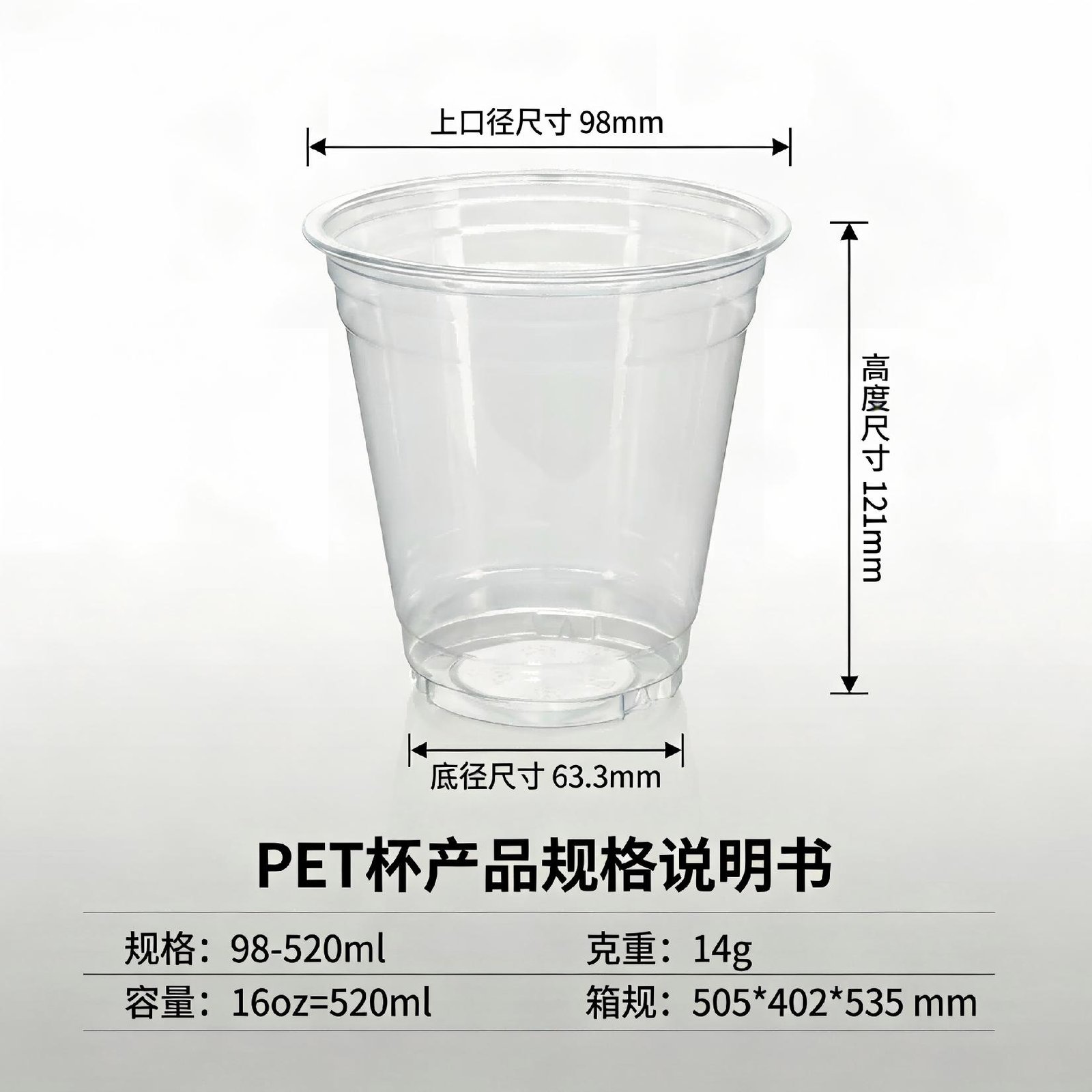 Product Overview The 98-520ml Caliber Premium Edition PET Cup is a specialized variant in our 16oz lineup. Designed with a unique base-to-height ratio (61.3mm base / 120.6mm height), it offers a slightly different aesthetic profile while delivering the exact 520ml volume your baristas rely on.
