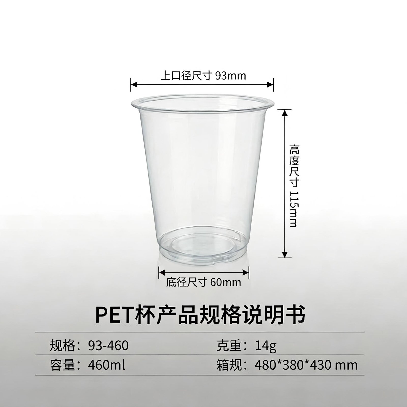 Product Overview The 460ml 93mm Caliber Clear PET Cup is designed for businesses seeking a reliable, mid-to-large capacity container with a more compact height of 115mm. Its 14g weight provides a sturdy, premium hand-feel, making it ideal for high-traffic cafes and beverage bars.